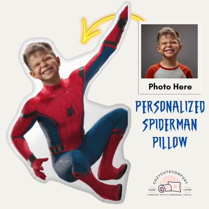 Personalized Spiderman Shaped Pillow From Photo – Custom 3D Superhero Cushion for Kids & Marvel Fans