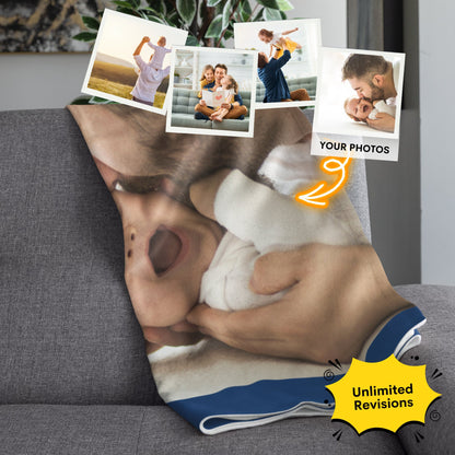 Our design team creates your custom artwork within 1-12 hours after receiving your photos. Once you approve the design, digital files are delivered instantly! Physical products (blankets, canvases, frames) ship within 2-3 business days and typically arrive in 5-7 days.